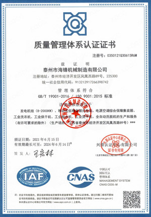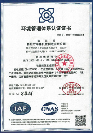 已先后通过ISO9001质量认证、ISO14001-2001环境管理体系认证、GB/T28001-2001职业健康安全管理体系认证,欧盟CE认证、SGS认证等